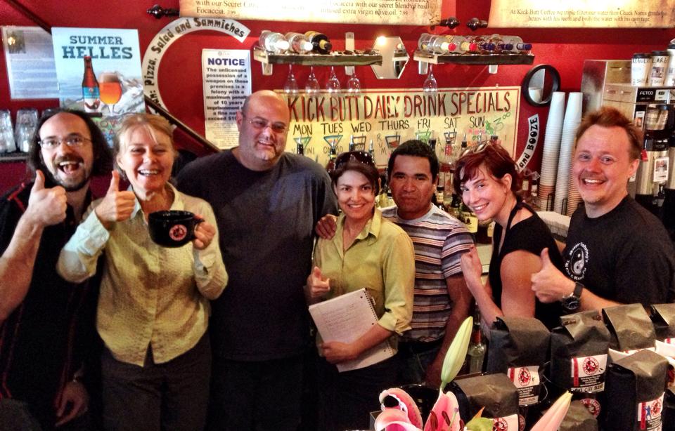 A local independent coffee shop, Kick Butt Coffee Music & Booze on Airport Boulevard takes you behind the counter to learn a few tricks of the trade. Thomas Gohring (of Master Gohring's Tai Chi and Kung Fu fame) brought this little coffee joint to life in February 2008, and it thrives with diehard regulars and an eclectic mix of folks drawn in by excellent coffee, a full bar (if you'd like something a little stiffer than coffee), music, and comedy shows. Oh yeah, and a shared affection for Chuck Norris.