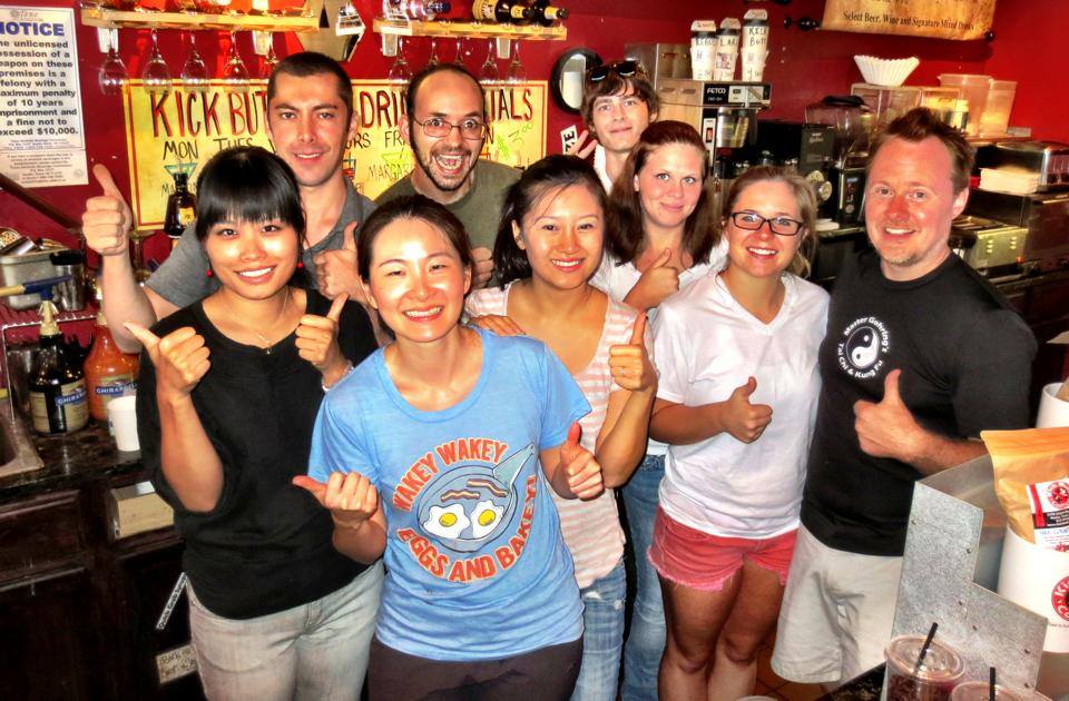A group of friends & I went to Kickbutt Coffee's Barista for a Day course last weekend and had such a blast! As my friend found the course and set it up, I wasn't too sure what to expect other than... well maybe making some coffee :) I have to say, the course was not only informative, but a lot of fun! Our instructor was Naimin, who just rocked in every way shape and form. I have never met someone so well versed on coffee and found the history provided to us at the beginning of class really interesting as well as a good start to the day itself. Naimin really wanted to make sure we got things out of the course that we had intended to leave with. He made sure to answer questions at the beginning, middle, and end. I have to also mention, that we were really in the space of the baristas on shift that day and was really impressed on how accommodating they were with sharing the space while still taking care of customers. I could only imagine it was pretty limiting for us to be in their space, but they were polite and professional nonetheless. Great day and tons of fun. I'd recommend this to friends as it was a fun activity to do with our group and could imagine pretty easy to do with strangers as well if your friends aren't as fun as mine ;)